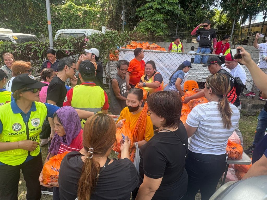 Truckloads of orange food packs arrived early in the morning at the Roman Catholic Cemetery, where the distribution was held around the resting place of the late Vicente Duterte, the former President’s father. The outreach extended to nearby cemeteries and surrounding communities where thousands of Davaoeños gathered to honor their departed loved ones.