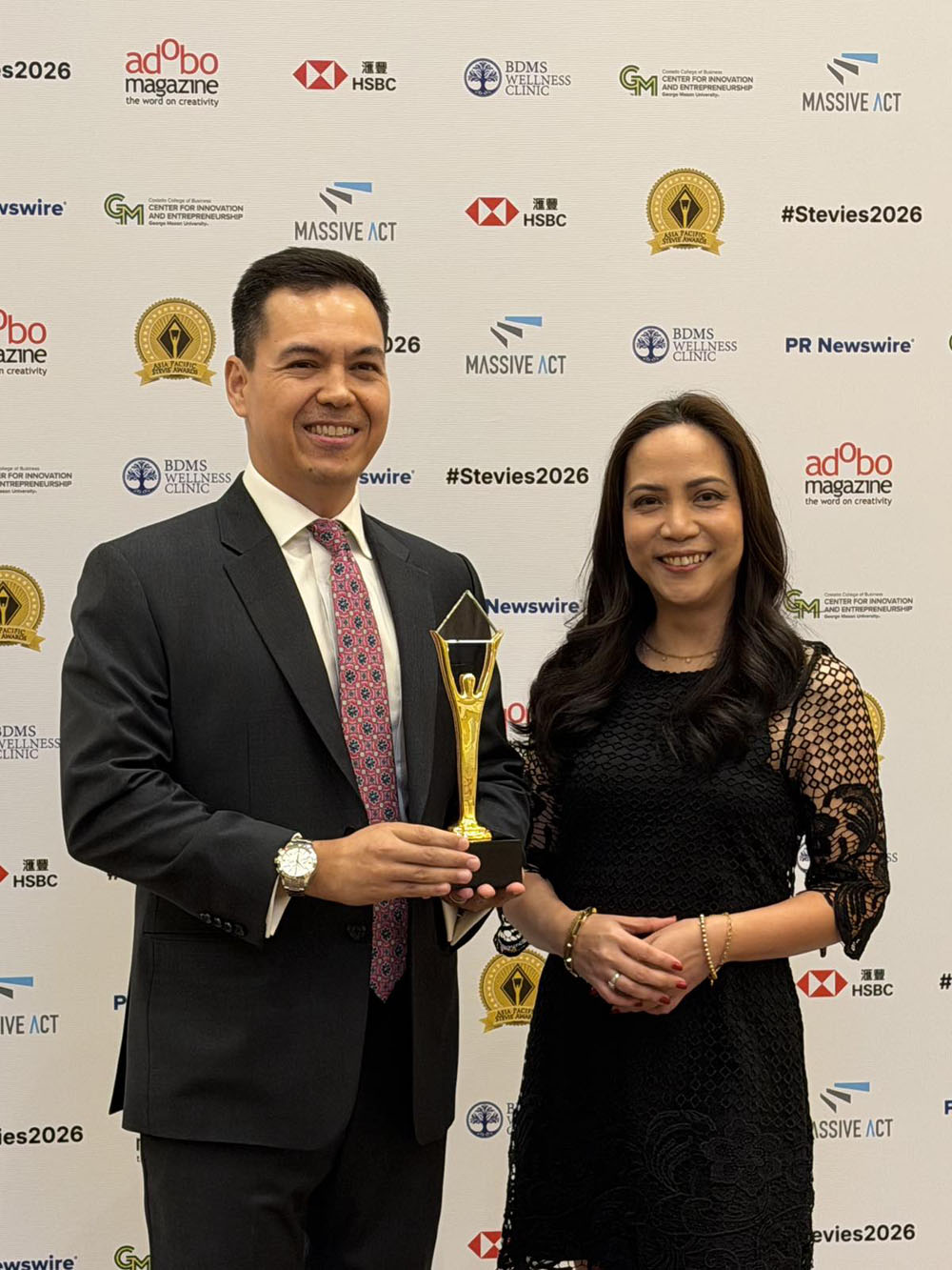 Will Howell, COO and CFO of 2GO Group, Inc., and Ethel Concepcion, Head of Corporate Marketing and Communications, accept two 2026 Asia-Pacific Stevie® Awards on behalf of 2GO Group.