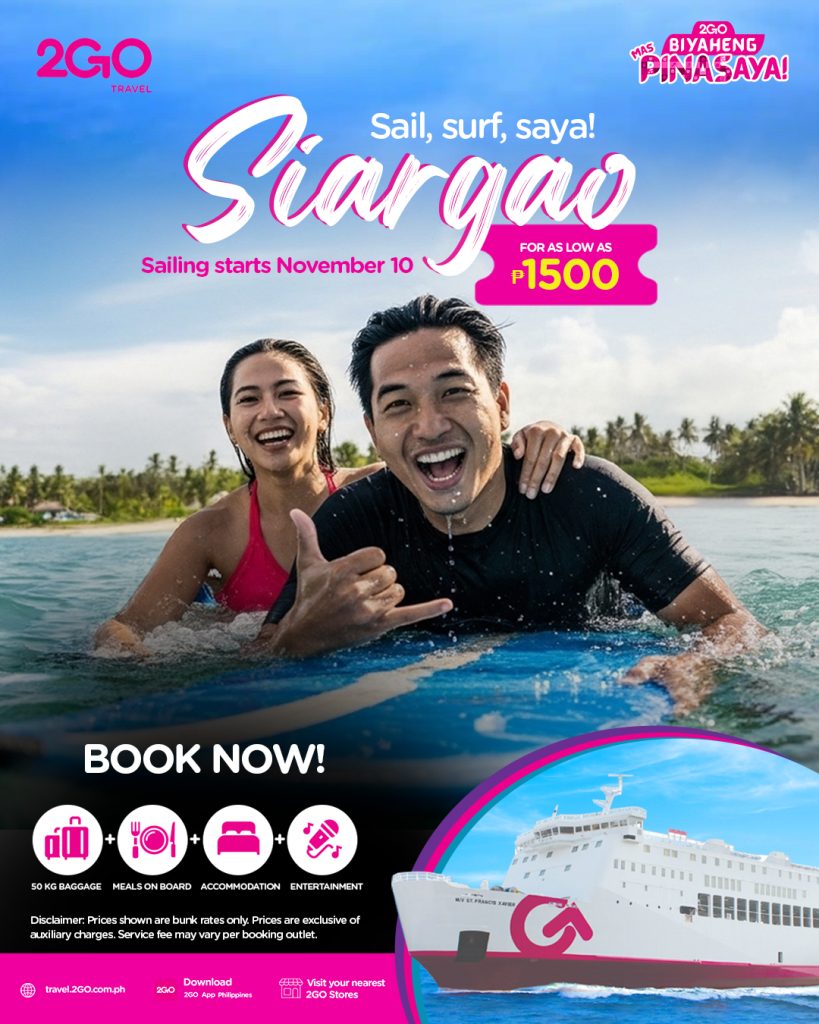 “With 2GO now sailing directly to Siargao, we’re not just expanding routes—we’re expanding possibilities,” said Francis Chua, 2GO Travel Business Unit Head. “This voyage is for every Filipino who has long wanted to experience Siargao without breaking the bank. At the same time, it ensures that local businesses can transport goods and supplies more efficiently. We’re making travel and trade more inclusive, one voyage at a time.”