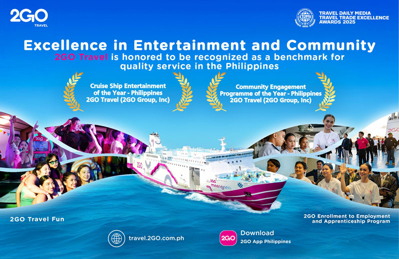 Manila, Philippines – 2GO Travel, the country’s premier sea travel operator, received two major recognitions at the 2025 TDM Travel Trade Excellence Awards – Asia. The company was awarded with the Community Engagement Programme of the Year – Philippines and Cruise Ship Entertainment of the Year – Philippines honors.