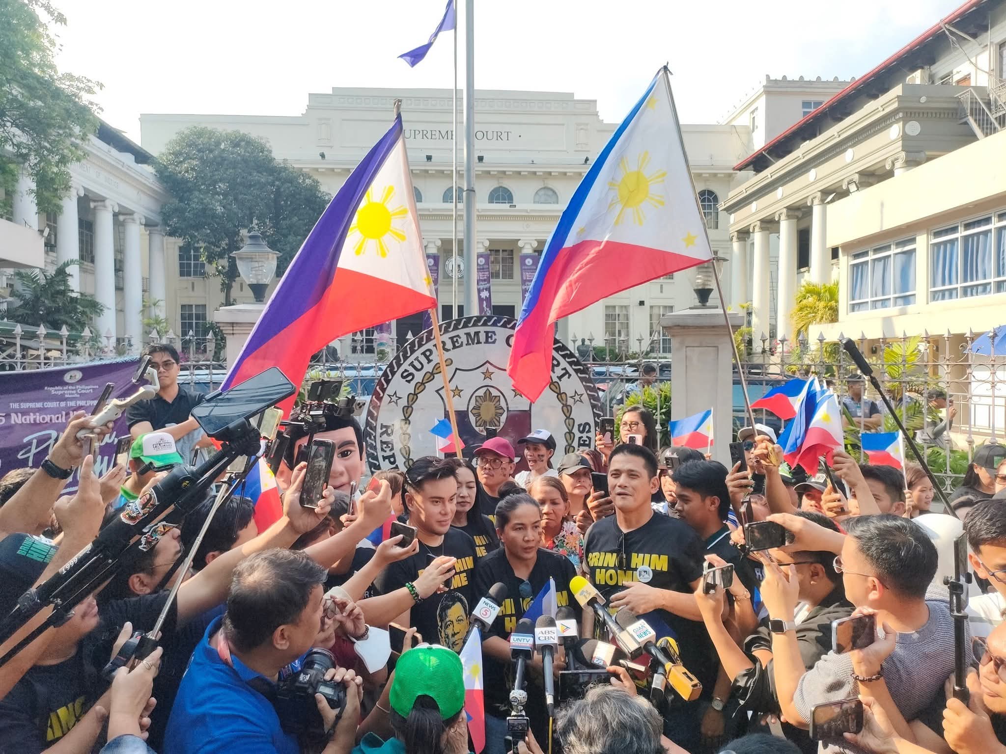 “We are here to submit the collected signatures of citizens appealing for the High Court to decide on the pending petitions concerning [former] President Duterte,” Padilla told reporters outside the Supreme Court.
