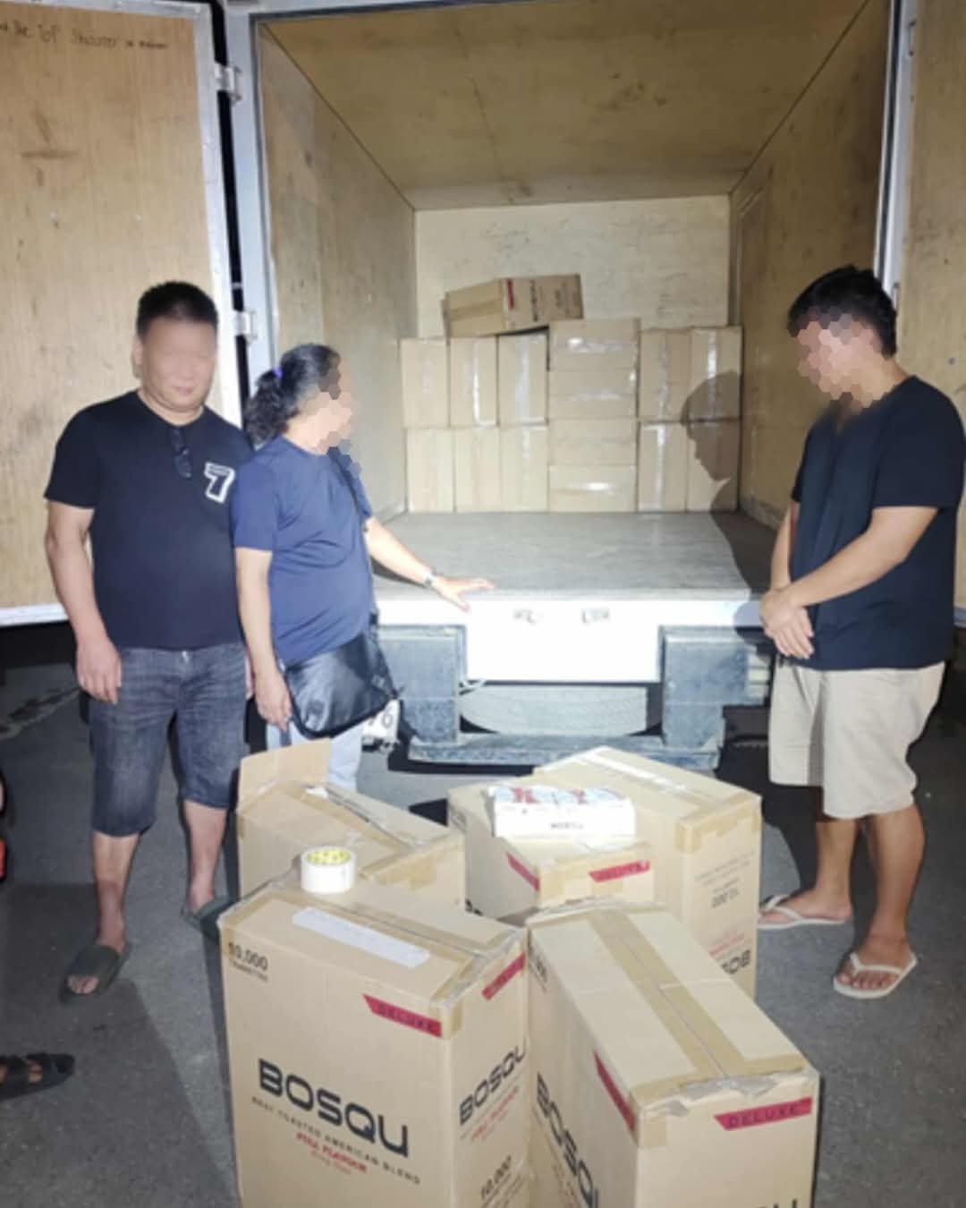 Police identified the suspects only as Radjiel, 27, and Radzmir, 46, both Filipinos from Sulu, and Ke, a 47-year-old Chinese national. They were all apprehended at approximately 1:30 a.m. when a patrol team observed the men unloading master cases of smuggled cigarettes from an Isuzu closed van along Carmen Street in Bo. Obrero.