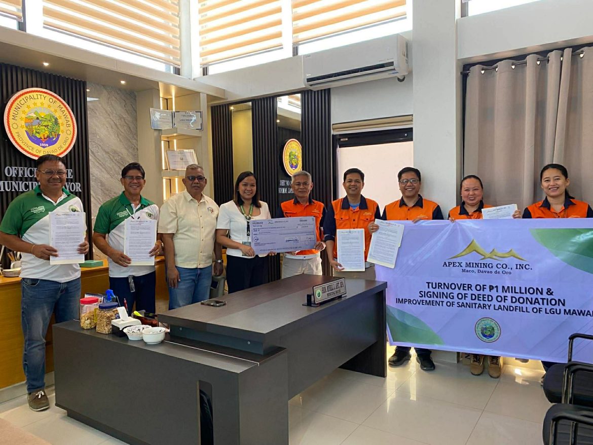 MAWAB, Davao de Oro — In support of the municipality’s environmental initiatives, Apex Mining Co., Inc. has donated P1 million to enhance the sanitary landfill facility of the local government unit of Mawab.