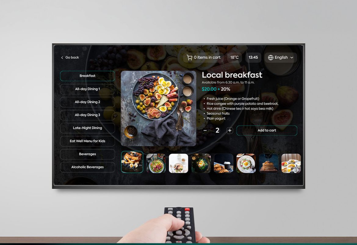 - E-commerce functionality for in-room ordering, boosting in-room service revenues.