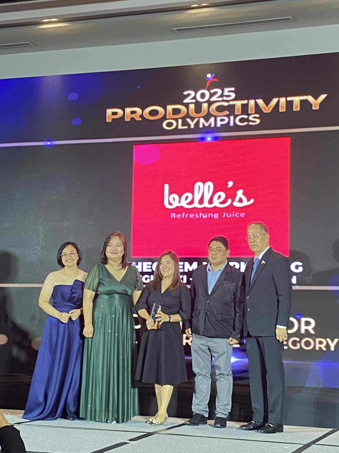 BELLE’S Refreshing Juices, operated by Shechem Marketing, was recognized as a National Finalist under the Industry Sector – Small Enterprise Category during the 2025 Productivity Olympics National Awarding Ceremony held on Oct. 1, 2025, in Taguig City.