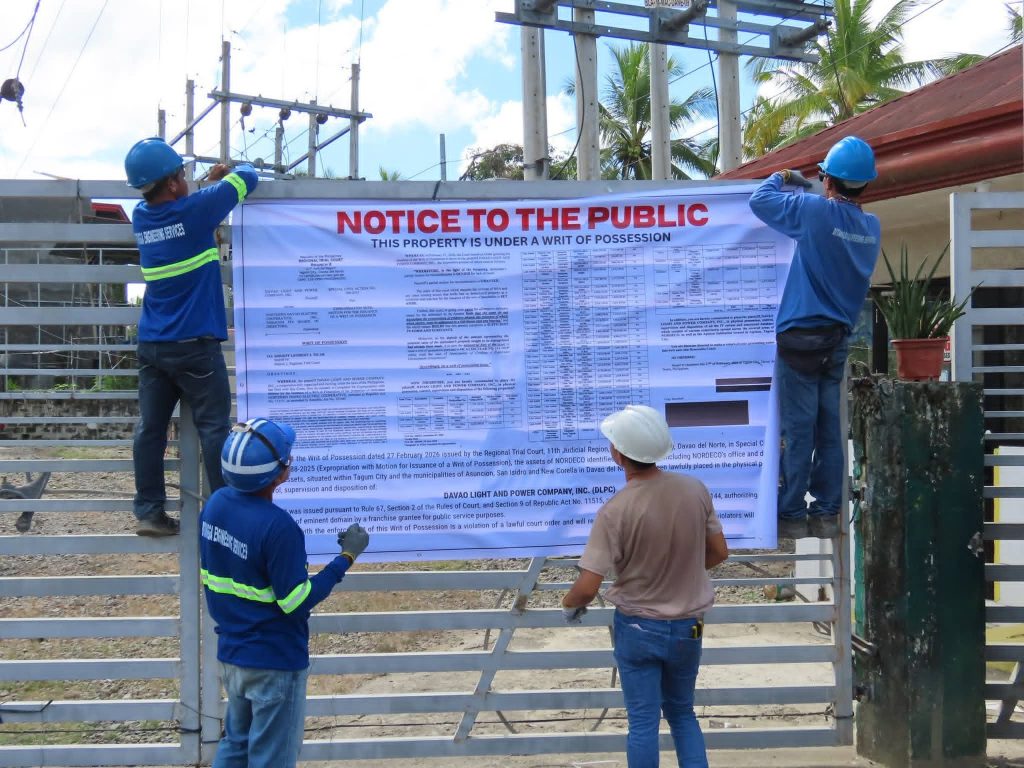 The writ of possession dated Feb 27, 2026, granted DLPC to obtain the utility assets, and is in accordance with the Republic Act No. 12144, which authorized the company to expand its franchises in Davao del Norte and Davao de Oro.