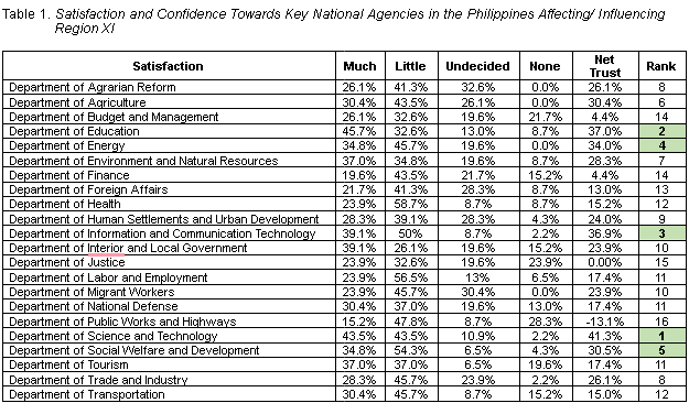 Home NewsDavaoeños` trust and confidence and confidence on national government agencies