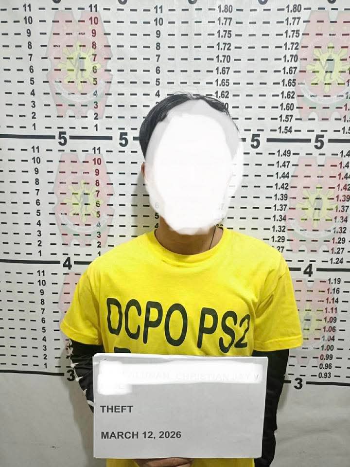 THE SAN Pedro Police Station apprehended a suspected thief on Wednesday, March 11, following a swift operation by the San Pedro Police Station (PS2).