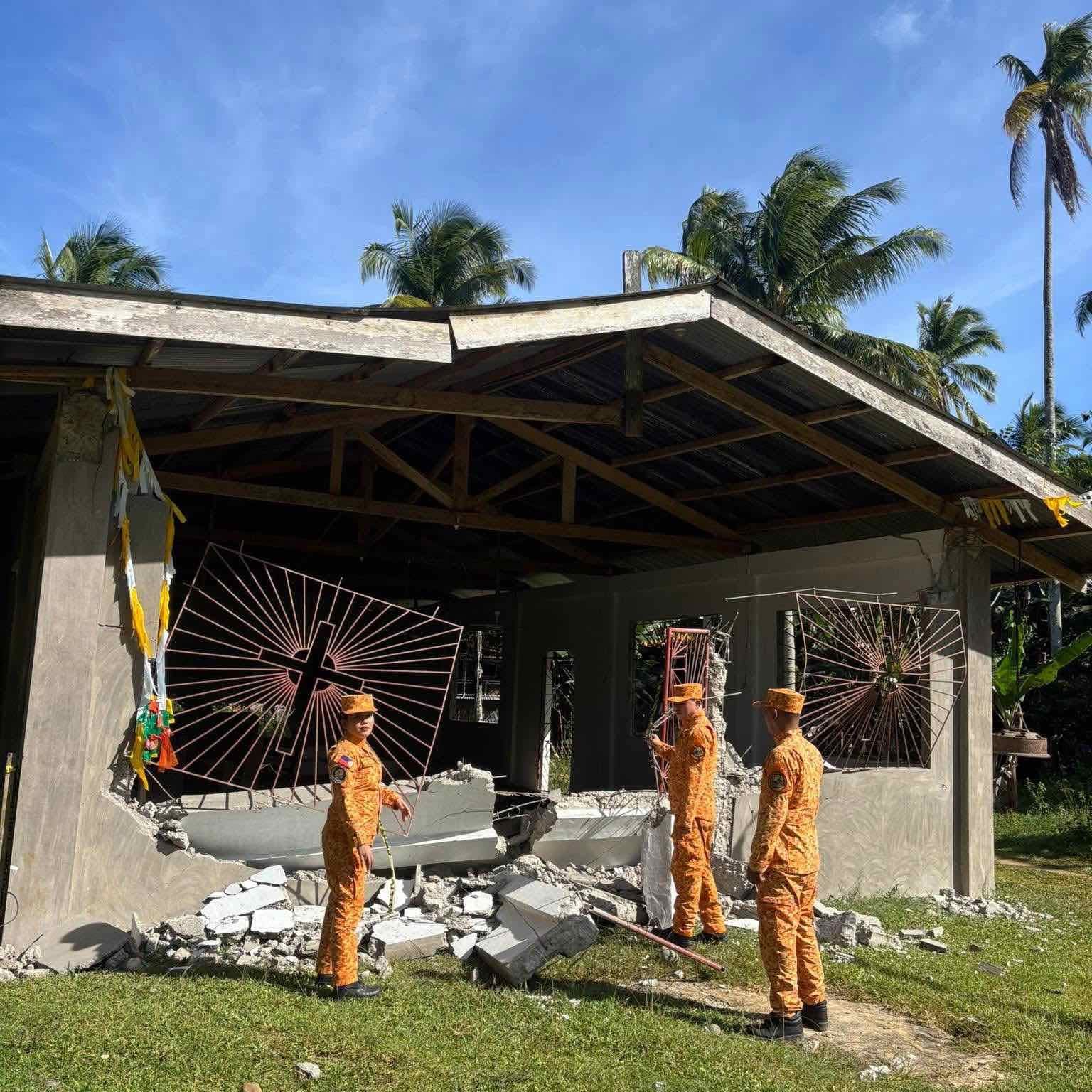 Sr. San Lucas Chapel in Barangay Santiago, Caraga, Davao Oriental, sustains damage following the 6.4 magnitude quake in Manay, Davao Oriental, on Jan. 7. BFP-Caraga Station