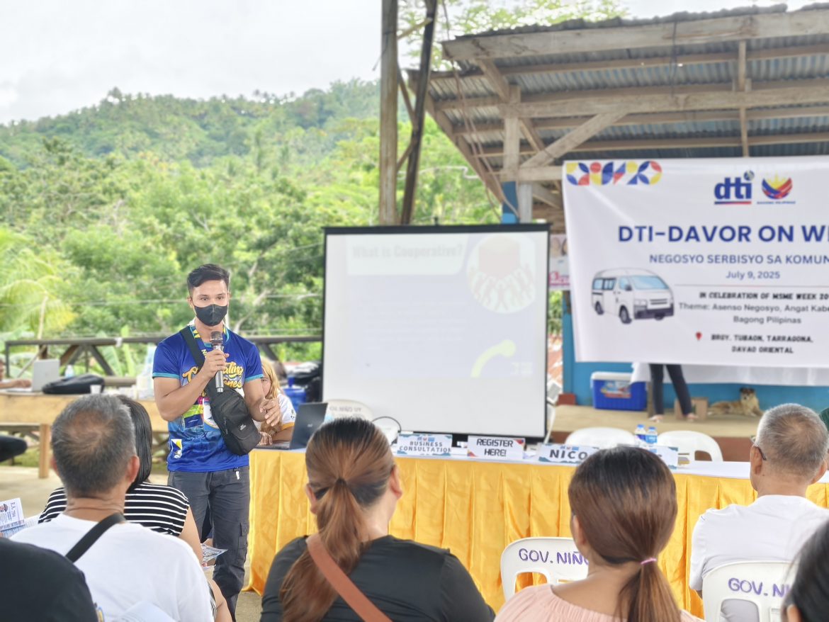 In celebration of Micro, Small and Medium Enterprises (MSME) Week, the program rolled out its first leg in Barangay Tubaon, Tarragona on July 9, bringing services closer to residents who previously had limited access. These included business name registration, linkage to financing institutions, business counseling, and consumer education closer to the people.