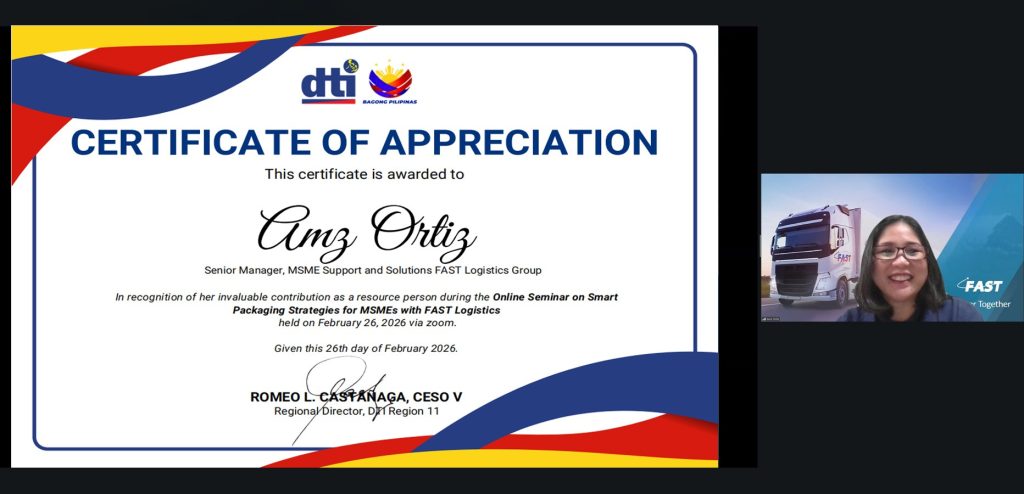 She further stressed that selecting the right logistics partner is as critical as choosing the right packaging materials, encouraging MSMEs to work with providers like FAST that offer cargo insurance and have extensive experience handling and transporting various types of goods. Such experience, she added, helps protect product quality and integrity from pickup to delivery.