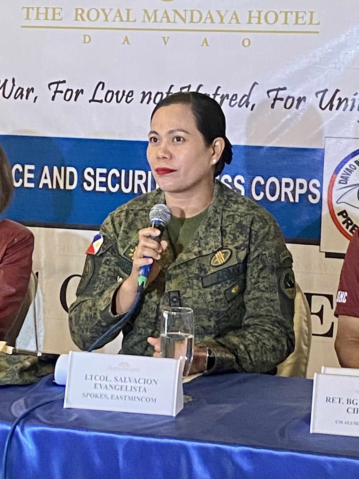 During the Davao Peace and Security Press Corps briefing at The Royal Mandaya Hotel on Wednesday, July 9, Lieutenant Colonel Salvacion Evangelista, EastMinCom spokesperson, said the activity will bring together reservists from the Philippine Army, Philippine Navy, and Philippine Air Force.