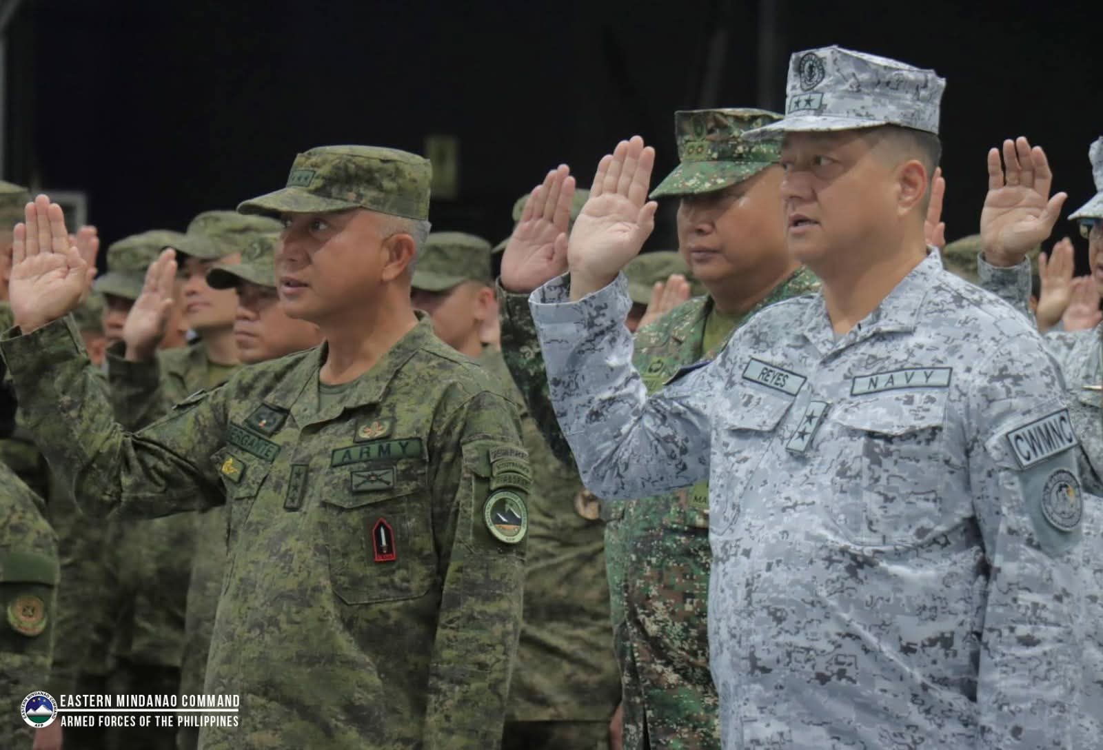 The ceremony, held at the Naval Station Felix Apolinario in Panacan, was led by EastMinCom commander Lt. Gen. Luis Rex D. Bergante, deputy commander Commodore Dwight Steven M. Dulnoan PN, and Naval Forces Eastern Mindanao commander RADM Constancio Arturo M. Reyes Jr.