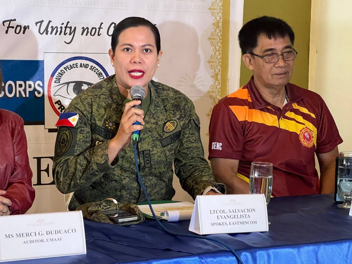 Lt. Col. Salvacion Evangelista, spokesperson for EastMinCom, shared these figures during Wednesday’s Davao Peace and Security Press Briefing held at The Royal Mandaya Hotel.