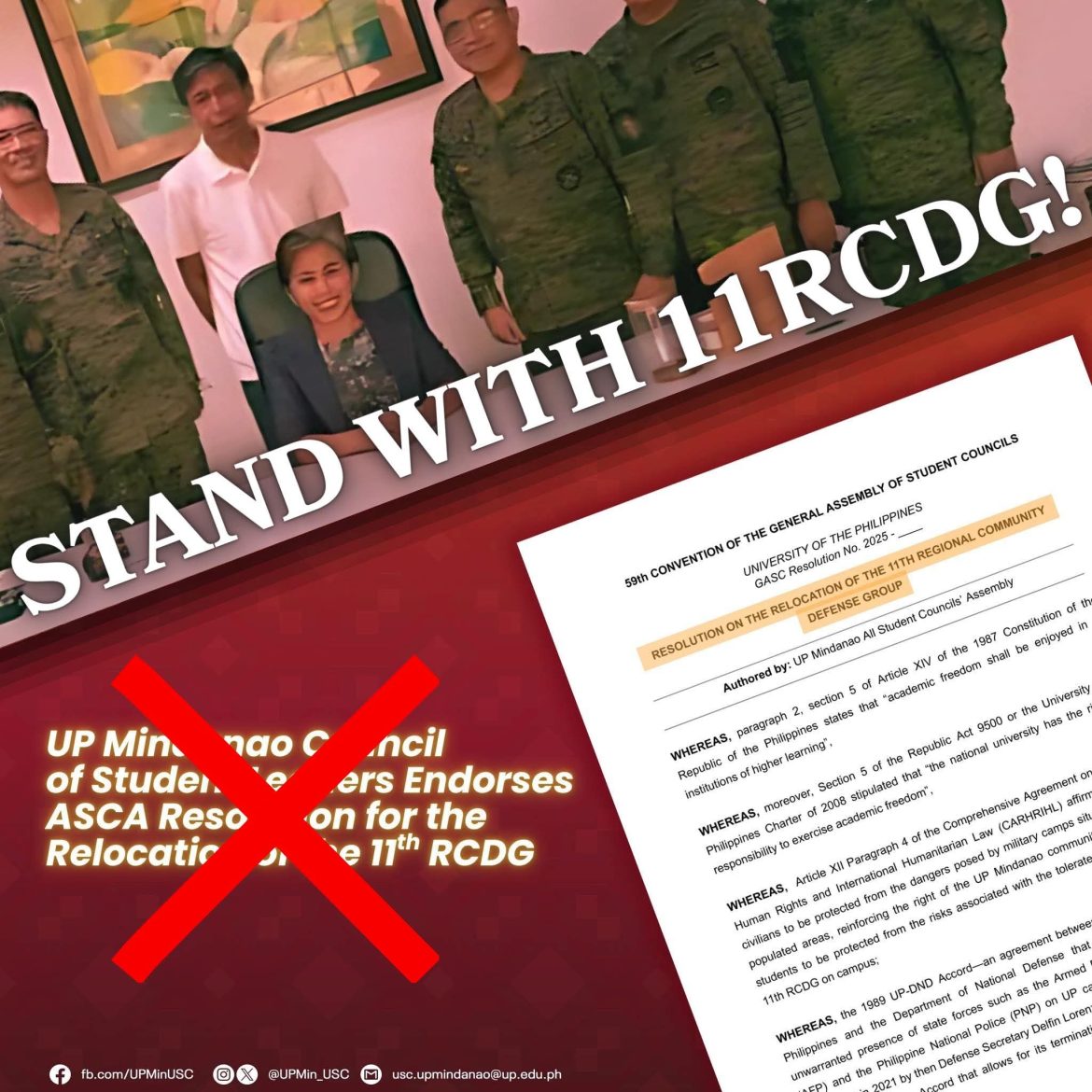 For nearly three decades, the 11RCDG and UP Mindanao have coexisted without incident. Saguino questioned why such a unit is being targeted by radical groups, suggesting that “the real objective here is not student safety.”