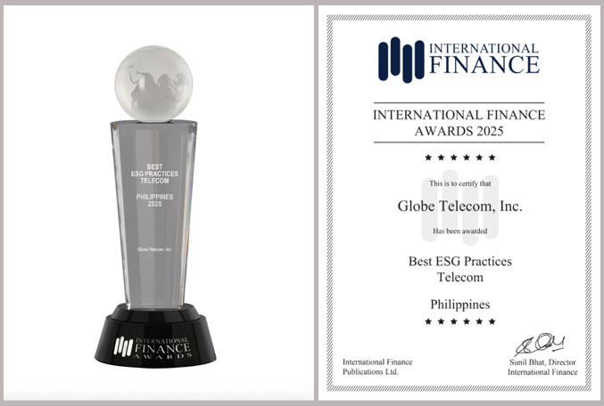 Globe has won the 2025 International Finance Awards (IFA) for Best ESG Practices in Telecommunications (Philippines), in recognition of its efforts to support a resilient, inclusive, and thriving digital future for the country.