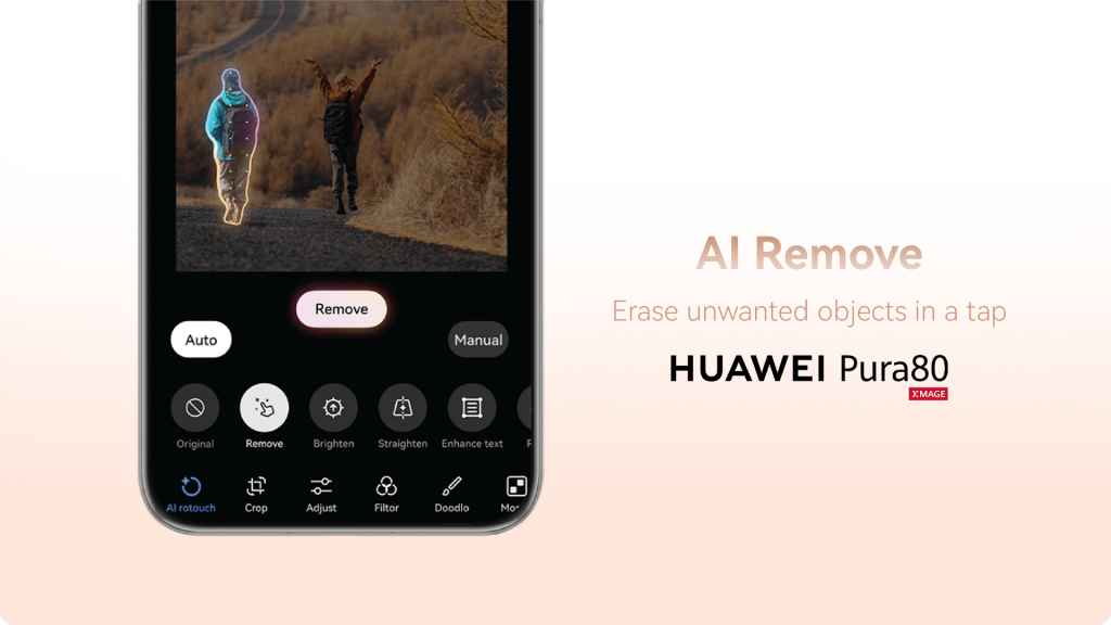 The HUAWEI Pura 80 lets users experience seamless AI features right at their fingertips, integrating intelligent, AI-powered functions into daily life to make every interaction smart and effortless. Users can edit photos easily with AI Removal, helping to remove unwanted passersby or objects with a single tap, so images stay clean and focused on the subject matter. AI Gesture Control adds a new layer of interaction, letting users engage with their device without touching the screen by airscrolling, airpressing, or holding your palm out to enable a Grabshot that allows for instant photography.