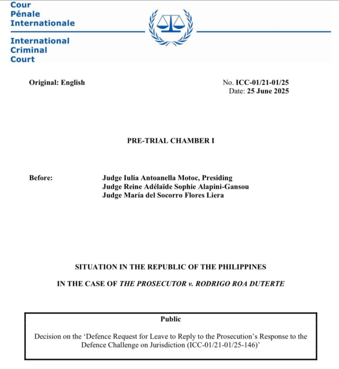 THE COURT has granted the defense’s motion to file a reply in their ongoing challenge to the ICC’s jurisdiction to try former President Rodrigo Duterte for crimes against humanity.