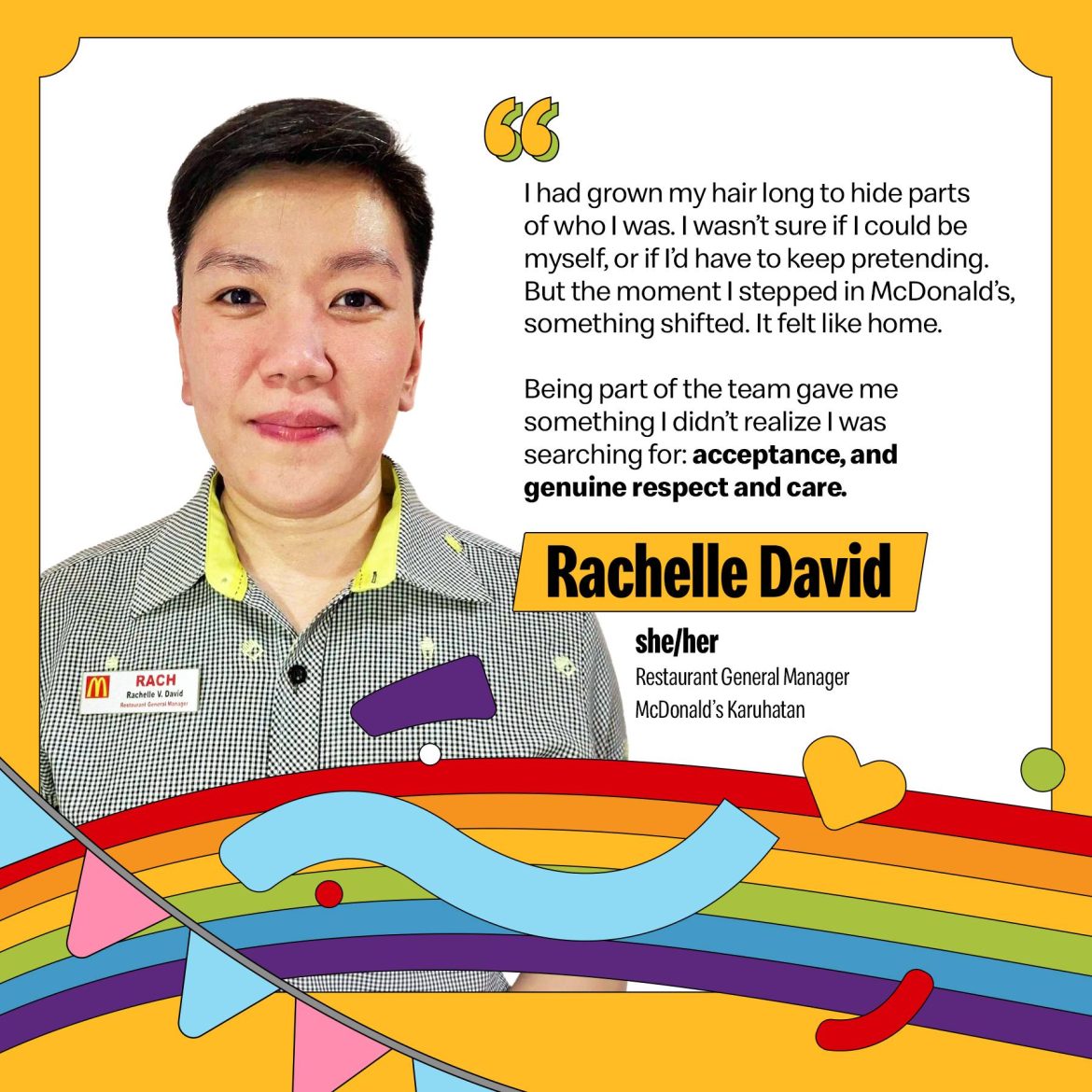 David shared a similar feeling of liberation and acceptance, saying “Loud and proud — Yung feeling na hindi mo kailangan mag-make up, mag-dress, o magpahaba ng buhok just to fit in or pretend to be someone you’re not. Sa McDonald’s, I felt accepted for who I really am. That kind of freedom and support empowered me to be confident, proud, and to truly become THE BEST ME—at work and beyond.”