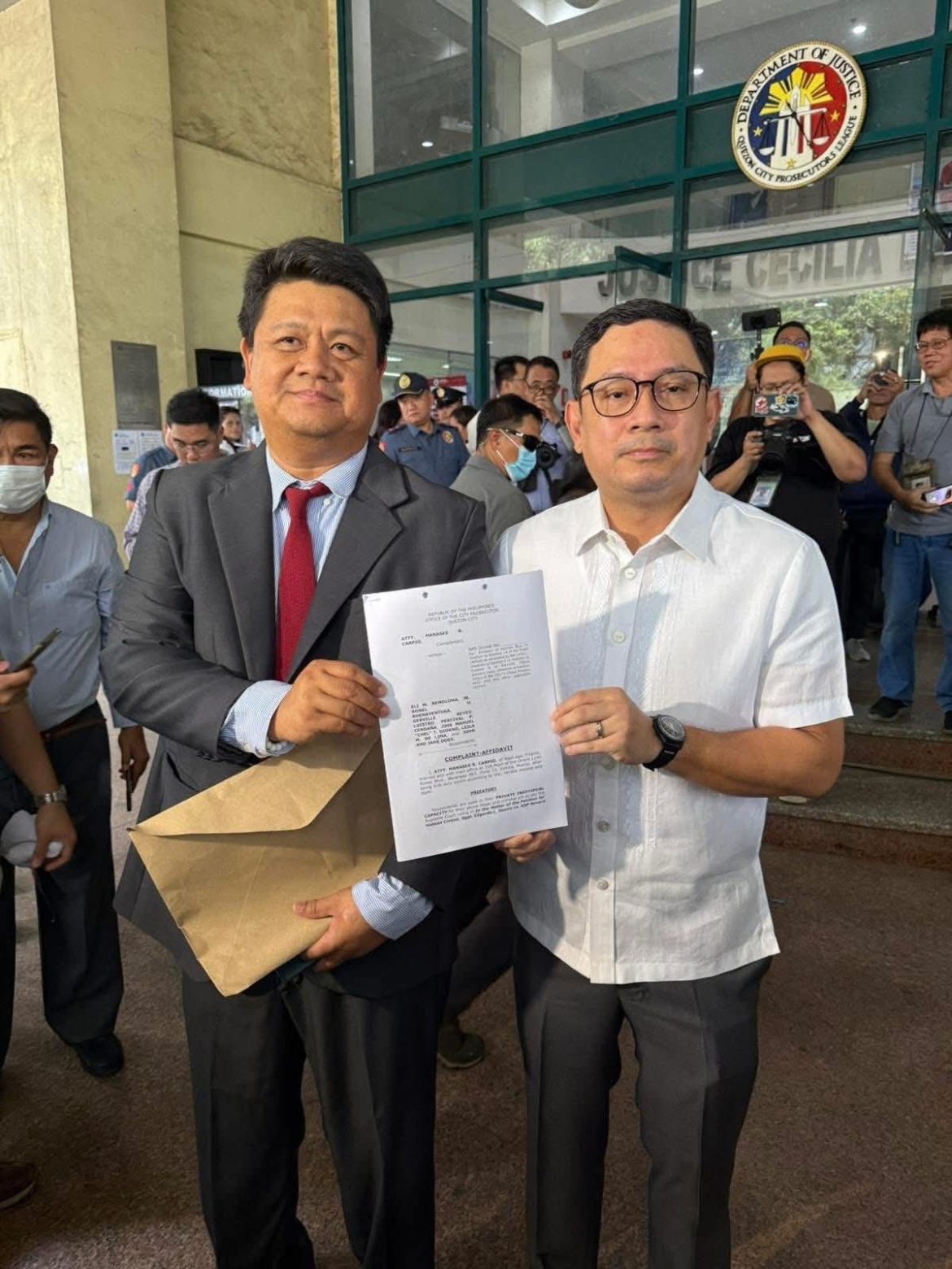 Atty. Manases Carpio arrived at the Quezon City Prosecutor’s Office on Monday to lodge the complaint against Bangko Sentral ng Pilipinas (BSP) Governor Eli Remolona Jr., Anti-Money Laundering Council (AMLC) executive director Ronel Buenaventura, and several members of the House of Representatives.