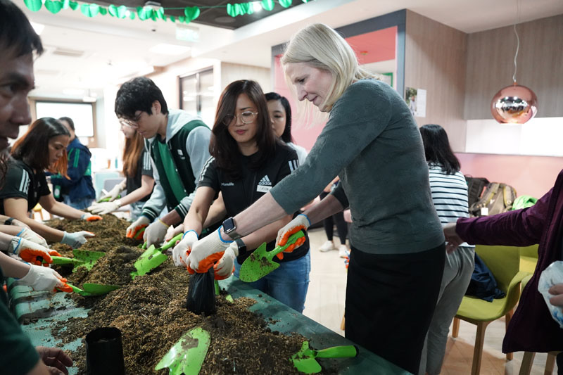 To close Impact Agenda efforts in 2025, Global Chief Marketing Officer, Karen Leggett, joined colleague-volunteers from Manulife Philippines, Manulife China Bank Life, and Manulife Investments Philippines along with Peso Smart Pinay graduates from Quezon City and Peso Smart teachers from the San Miguel Elementary School in Pasig to prepare 200 native tree