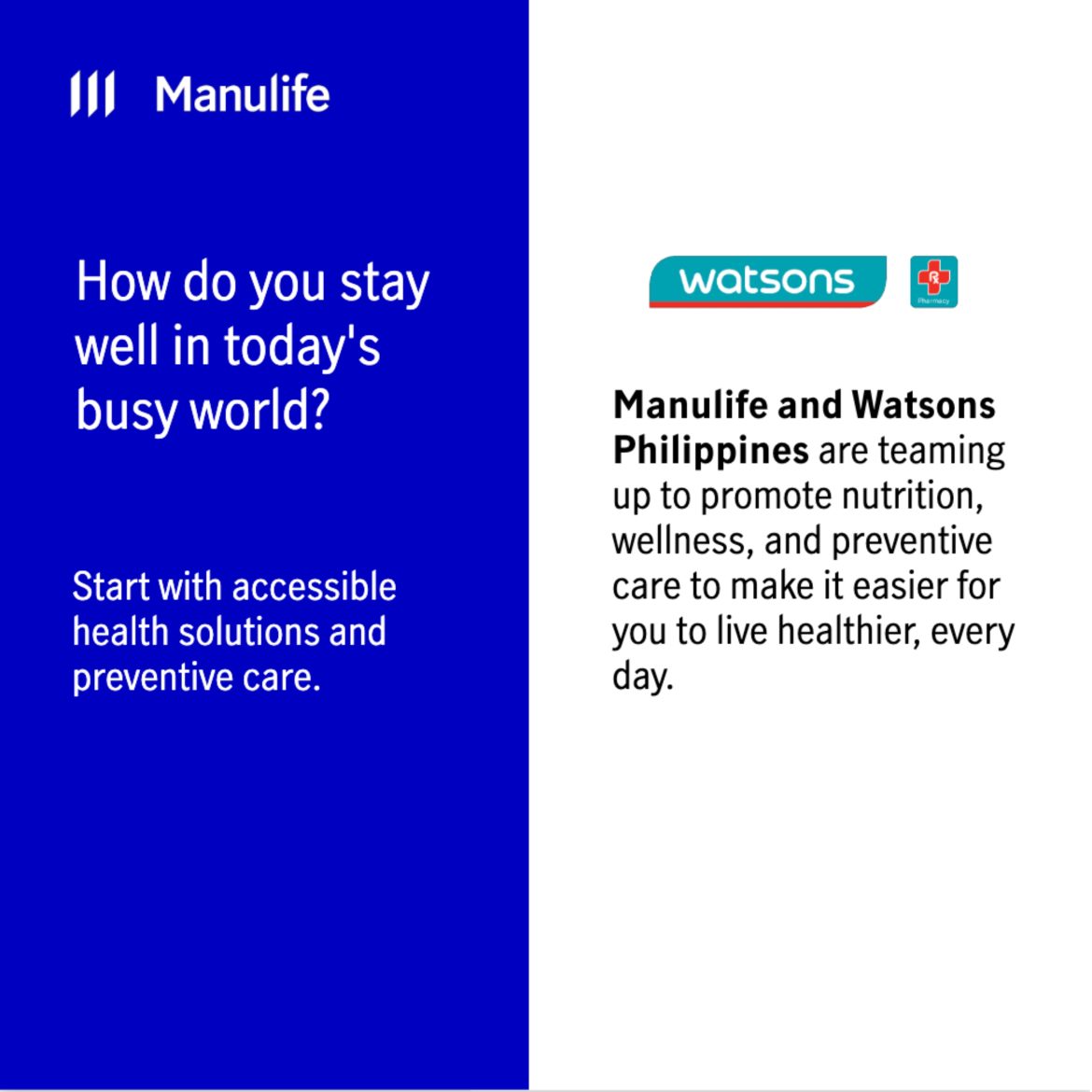 “People in the Philippines can picture better days ahead as Manulife supports them in taking charge of their lives through greater health awareness and valuable financial protection,” said Sonali Verma, Chief Marketing Officer, Manulife Philippines. “By collaborating with Watsons Philippines, we look forward to leveraging each other’s network to enable more Filipinos to take proactive steps towards a healthier and more secure future.”