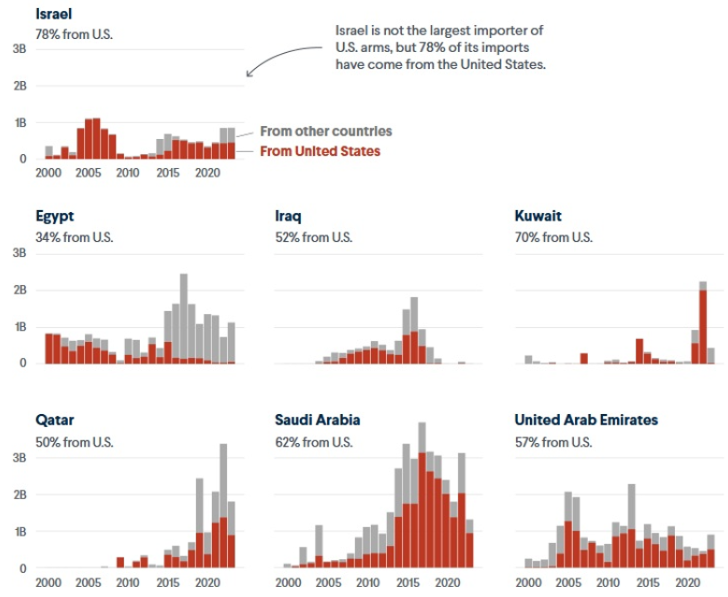 Estimated military value of arms imports. These countries include the largest recipients of US arms sales in the Middle East