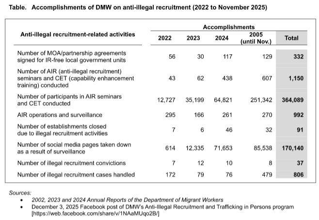 DMW also filled the year with anti-illegal recruitment (AIR) operations and surveillance activities, with some 992 of these surveillance activities happening over a 47-month period.