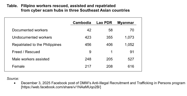 “Enhanced case handling has been there for a matter of time. Standardized protocols, unified digital case tracking systems, and strengthened capacities for cyber-enabled and cross-border trafficking ensure that (DMW’s) processes match the realities of modern-day exploitation,” Marquez said.