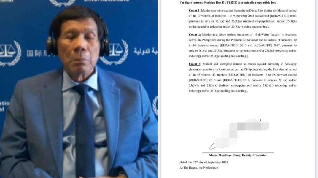 THE REDACTED  International Criminal Court document surfaced online, which outlined several details of murder and attempted murder charges in connection to the crimes against humanity faced by former President Rodrigo Duterte.