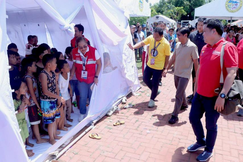 The President then visited the Tent City established within the Tarragona Municipal Grounds, serving as a temporary evacuation site for displaced residents, including the child-friendly space tent for kids dealing with trauma.