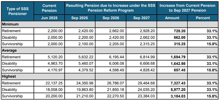 THE SOCIAL Security System (SSS) will implement a landmark Pension Reform Program starting September 2025, in line with the directive of President Ferdinand R. Marcos Jr. and following the discussion of Finance Secretary Ralph G. Recto with the President on the matter. Supported by comprehensive actuarial studies, the program features a structured, three-year increase in pensions for all SSS pensioners – the first multi-year adjustment of its kind in the institution’s 68-year history.