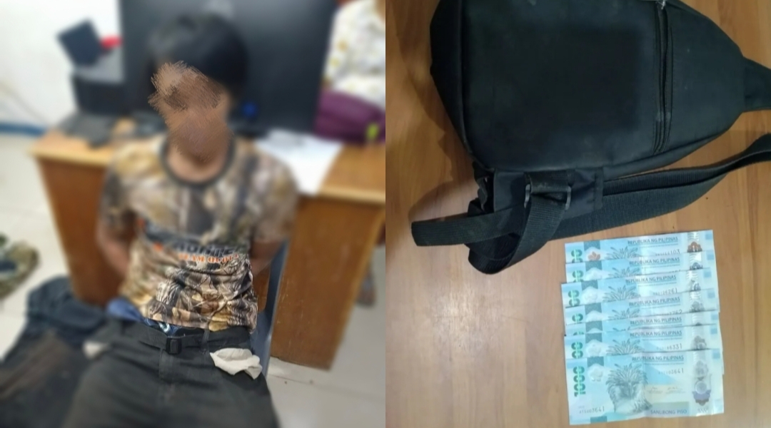 Police caught up with the suspect along the road in Purok 1, Barangay Sirib. Upon his arrest, authorities recovered ₱7,000 —a portion of the stolen money—from his possession.