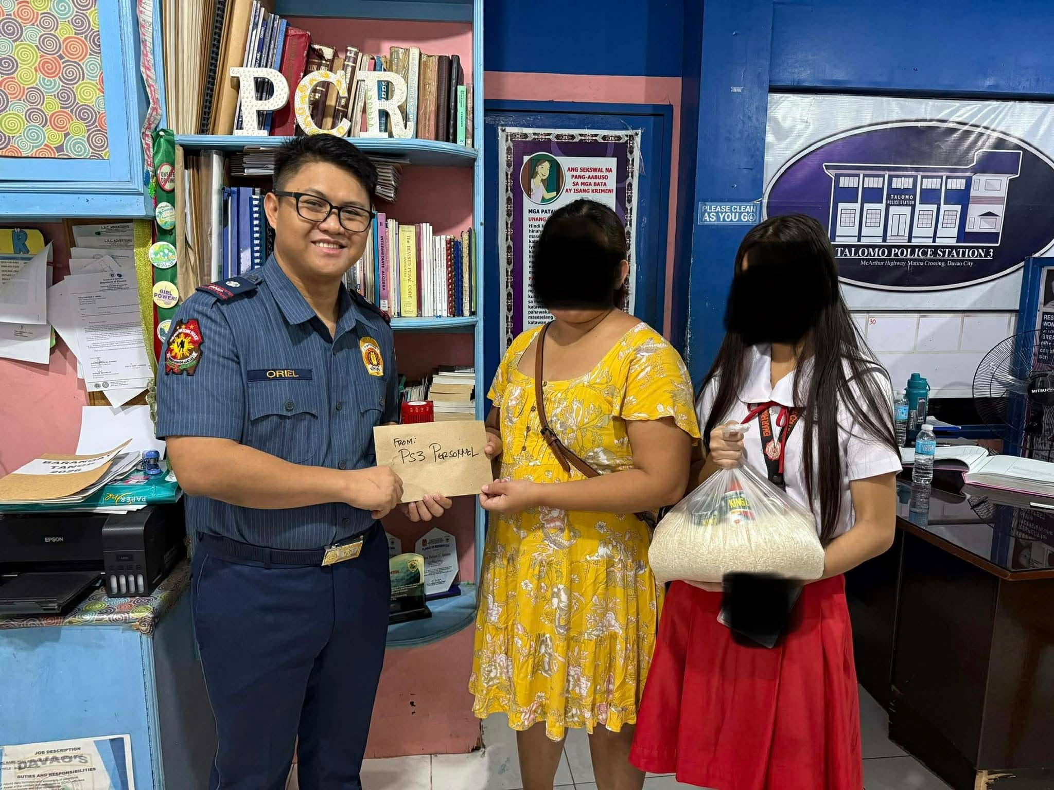 Moved by the family’s plight, Major Genesis B. Oriel, station commander of PS3-Talomo, immediately mobilized his personnel.