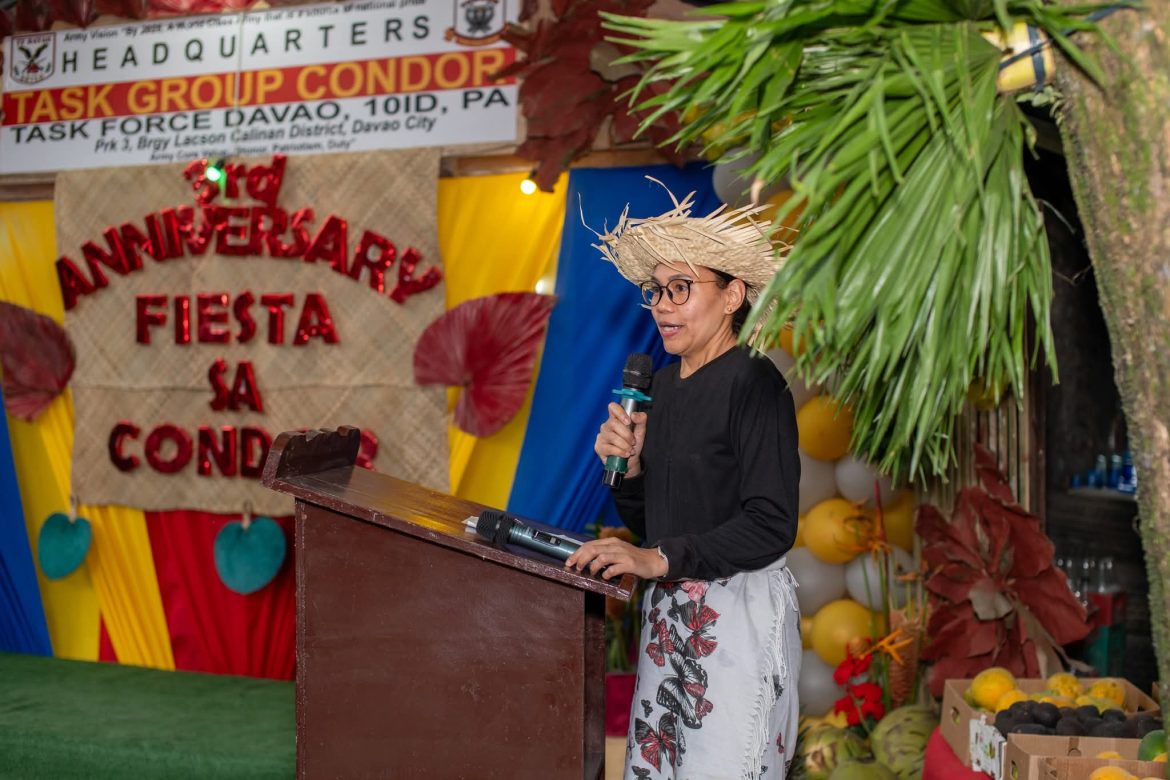 TG Condor, one of five task groups under Task Force Davao, is specifically charged with border security along the Davao-Bukidnon corridor, currently headed by Major Joy Damasco as commanding officer.