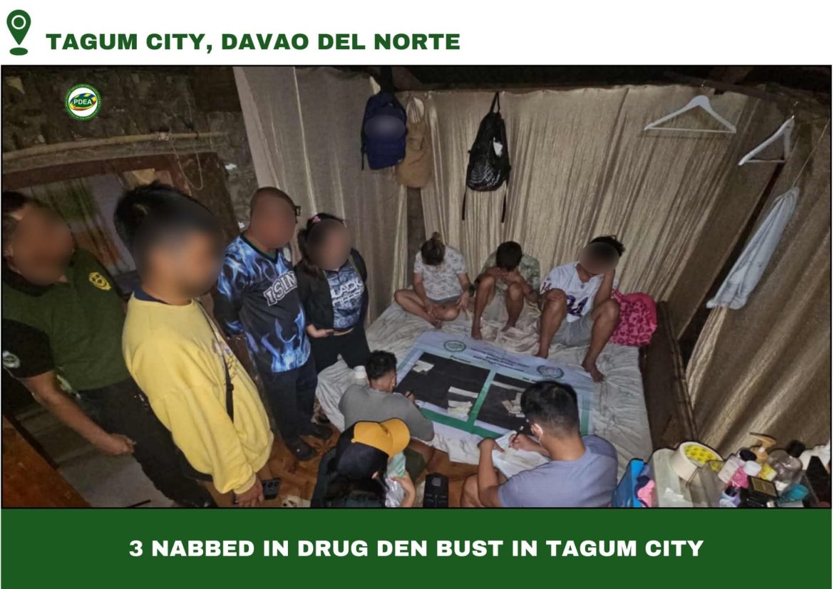 AUTHORITIES dismantled an alleged drug den and arrested three individuals during a buy-bust operation in Purok Sampaguita, Barangay Bincungan, at approximately 4:21 a.m. on Tuesday, Aug. 20.