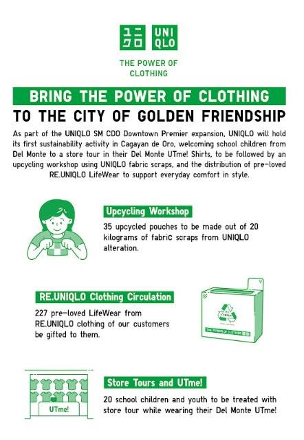 To celebrate the store’s expansion, UNIQLO is holding its first sustainability activity in the area, wherein Del Monte schoolchildren can tour the store and join an upcycling workshop to learn more about the Power of Clothing.