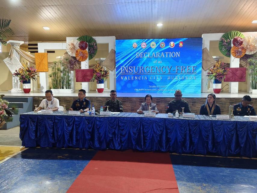 VALENCIA City became the first local government unit in Region X (Northern Mindanao) to be officially declared an insurgency-free area on Friday, Oct. 10, a historic milestone achieved through a united front of local officials, military, police, and the community.