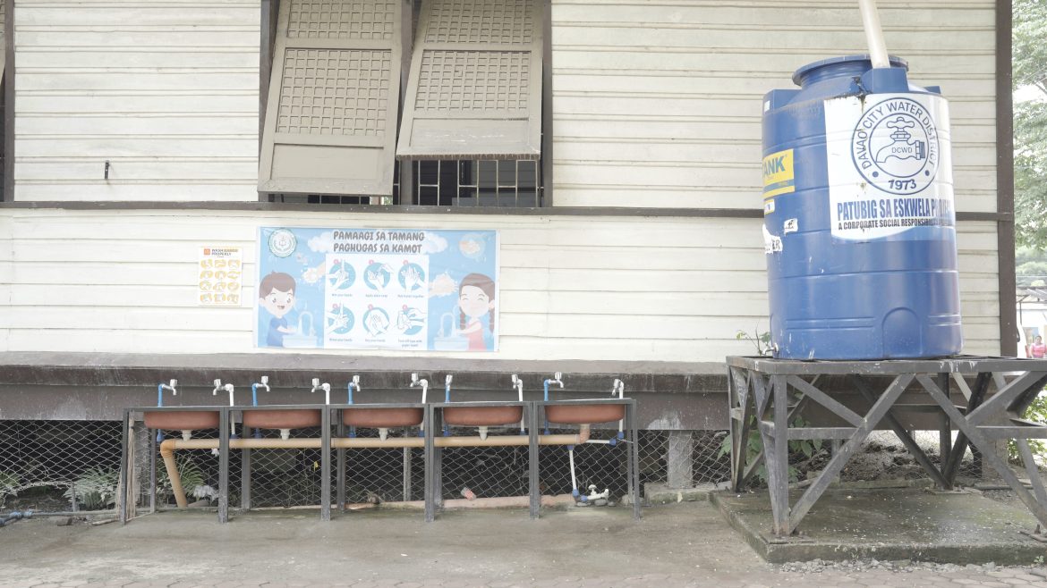 A group handwashing facility at Cabantian Elementary School is now fully operational, supporting daily hygiene routines for