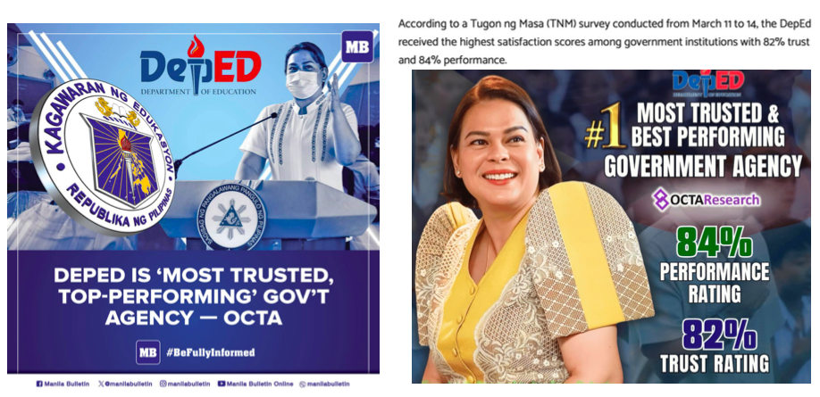 DepEd became the top-performing and most trusted government agency, with an 84% trust rating (OCTA, April 2024), showing that she was widely respected by public school teachers.