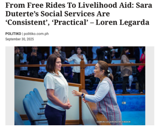 “I recognize the Office of the Vice President’s work, headed by VP Sara Duterte, in providing social services to Filipinos through programs ranging from livelihood assistance, education support, disaster relief, and transport services. These initiatives have reached thousands of households, especially in underserved and disaster-stricken areas,” Legarda said.