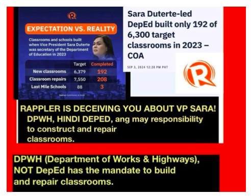 Yet, when the 2023 DepEd accomplishment report and COA audits concerning classroom backlogs were released, it was VP Sara who was portrayed as being at fault, not Congress, which made the insertions, nor the President, who did not veto them.