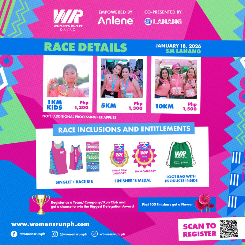 Registration is now open! To secure your slot, learn more about race categories, inclusions, and event updates, visit www.womensrunph.com. Don’t forget to follow Women’s Run PH on Facebook and Instagram for the latest announcements and race-day highlights.